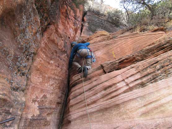This is Jake rapping off the “chimney crux”.