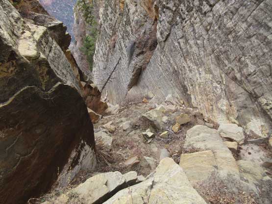 Partway up the chutes, looking down.