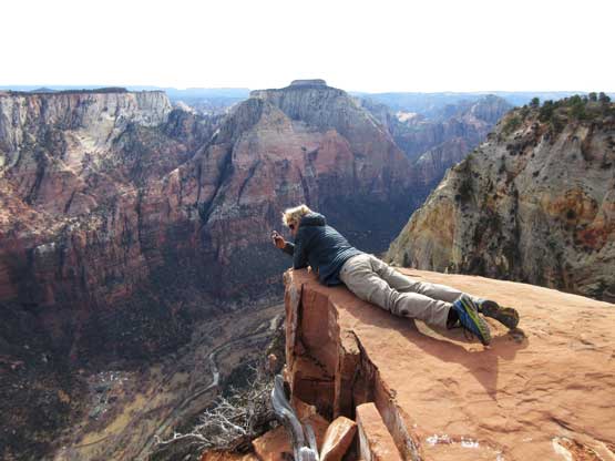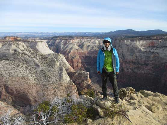 Jake surveying Zion Canyon with The East Temple behind