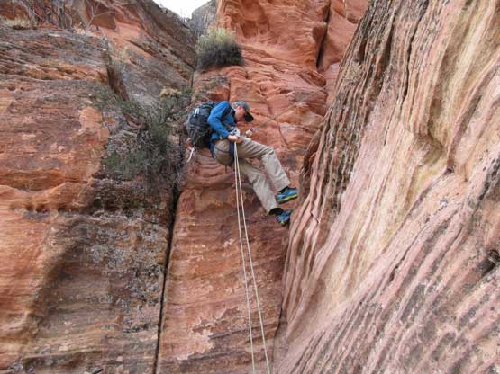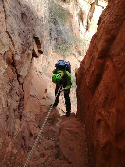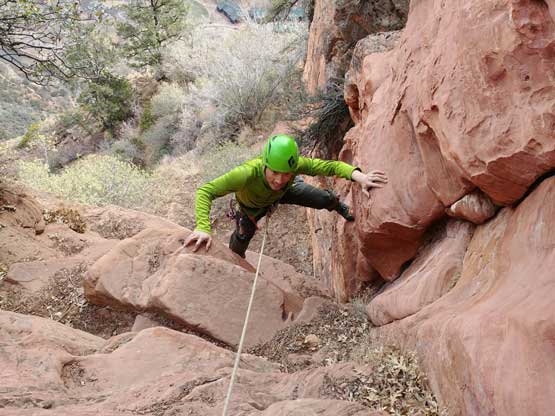 Jake rappelling off the “dihedral crux”