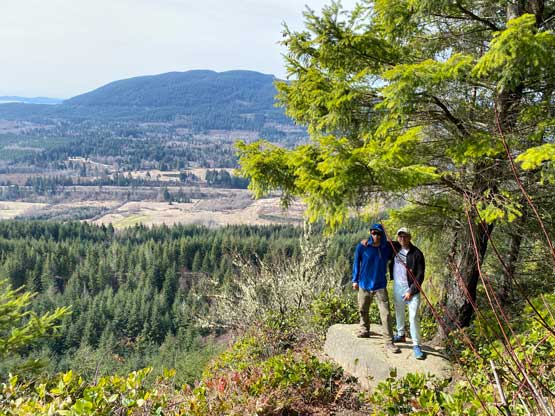 The hike was no-brainer as we just needed to put one foot in front of another while following the service road all the way to the top but we weren’t doing great on time. I made us to carry nothing but one bottle of water each in order to speed things up. The 3.5-km ascent took us about 40 minutes. In addition to the viewpoint at the end of the road we also dashed into the woods to find the true (forested) summit, which has over 200 m prominence.