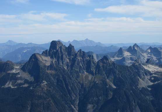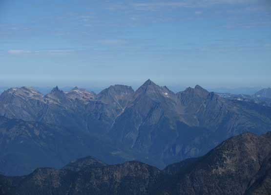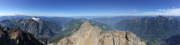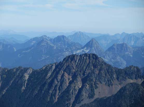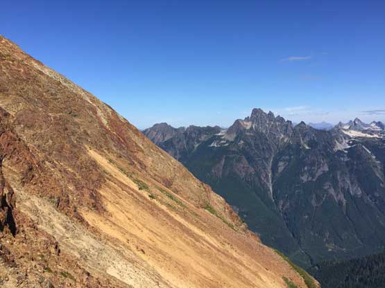 The “Border Peaks” are two iconic spires that locate north of Mt. Baker Highway and south of Slesse Creek in the Chilliwack River valley. American Border Peak is the taller, and more important of the two from a peak-bagger’s perspective. It ranks Top 100 in Washington’s prominence list and Top 200 in Washington’s elevation list and adding to the stats, this is a very eye-catching summit when viewing from almost every single vantage point in the Chilliwack area. It’s also one of those “taller peaks” on the Fraser Valley’s skyline and I can clearly make it out while driving around Metro Vancouver on a clear day. For the sake of these reasons American Border Peak is one of my must-do objectives, despite its reputation of being perhaps the shittest summit in the close vicinity. The peak is composed of ancient sediments and volcanic choss that appeared to have undergone some higher degree of oxidation. The reddish coloured choss is by far the worst type of rocks I’ve found anywhere, as the law seemed universal in Rockies or the Cascades. The rocks on American Border Peak are nowhere as bad as Goodsirs, but for someone that doesn’t have a Rockies background I can totally see how this can easily turn into a choss nightmare.