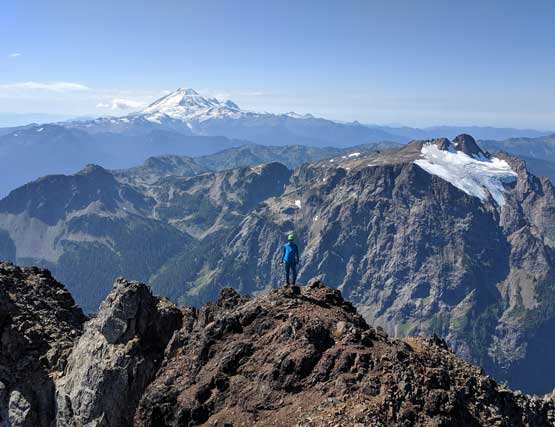 The “Border Peaks” are two iconic spires that locate north of Mt. Baker Highway and south of Slesse Creek in the Chilliwack River valley. American Border Peak is the taller, and more important of the two from a peak-bagger’s perspective. It ranks Top 100 in Washington’s prominence list and Top 200 in Washington’s elevation list and adding to the stats, this is a very eye-catching summit when viewing from almost every single vantage point in the Chilliwack area. It’s also one of those “taller peaks” on the Fraser Valley’s skyline and I can clearly make it out while driving around Metro Vancouver on a clear day. For the sake of these reasons American Border Peak is one of my must-do objectives, despite its reputation of being perhaps the shittest summit in the close vicinity. The peak is composed of ancient sediments and volcanic choss that appeared to have undergone some higher degree of oxidation. The reddish coloured choss is by far the worst type of rocks I’ve found anywhere, as the law seemed universal in Rockies or the Cascades. The rocks on American Border Peak are nowhere as bad as Goodsirs, but for someone that doesn’t have a Rockies background I can totally see how this can easily turn into a choss nightmare.