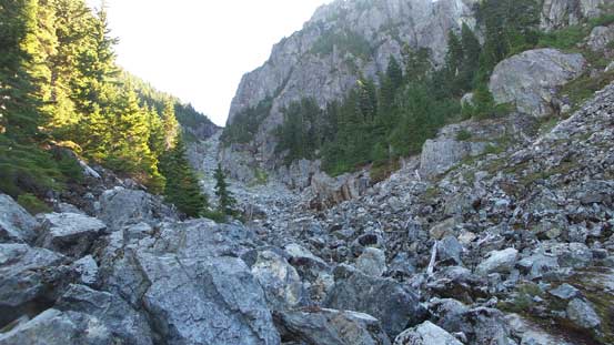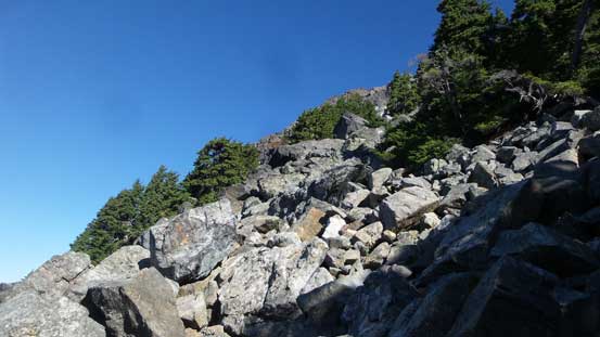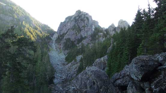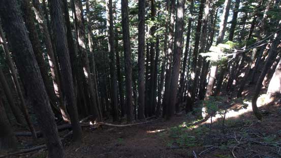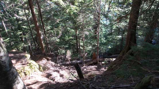 Looking back at the main summit of Baring Mtn. before dropping into the trees