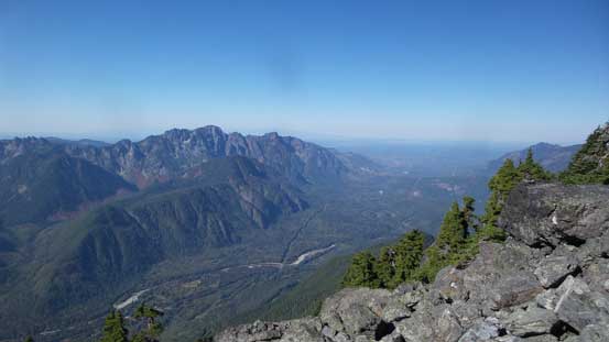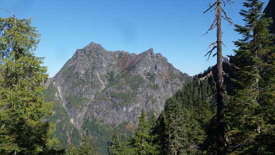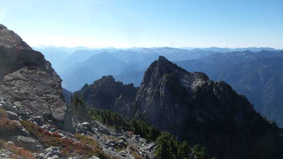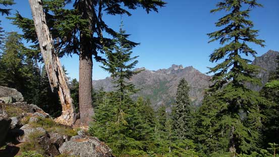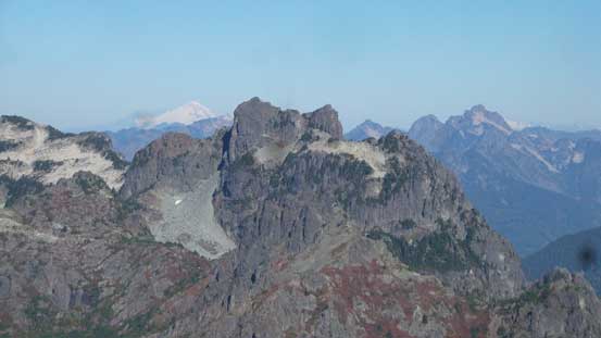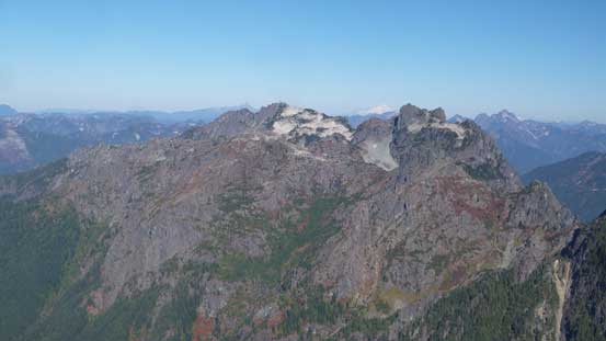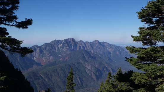 A closer look at Merchant Peak with quite a few rugged peaks behind
