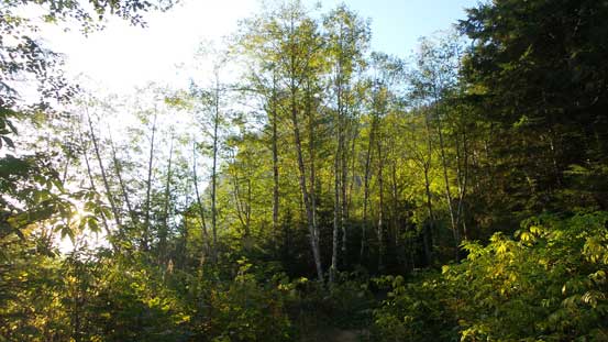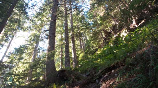 With the challenge set at the last minute I drove down south across the border on Wednesday night and made to the trail-head after midnight. The 5 or 6 miles or dirt road was in an excellent shape such that I could have easily gone by easily with just a LC 2-wheel drive.. I was not happy about this because I drove my Toyota Tacoma down there so wasted a lot of gas money.. But that’s just a minor thing. The next morning it was actually the arrival of another hiker that woke me up as I slept through the alarm.. By the time I finally got going it was already an hour past the first light.. Right off the bat I almost made a mistake for taking the Barclay Lake trail. The unofficial and unsigned “Baring Mtn. trail” starts parallel to the main trail, but on the right (south) side. The point where this trail turns sharply into the forest was fairly obvious and then it’s a 400+ meters of steep grunt. There are small switchbacks here and there and the grade isn’t as steep as I thought it’d be. It’s still a steep hike, but quite an averaged one if in BC Coast.