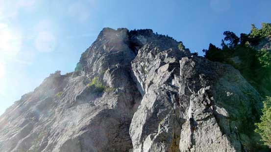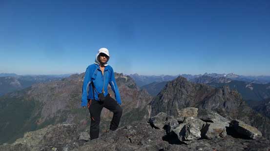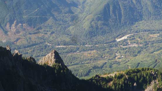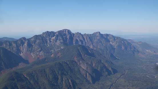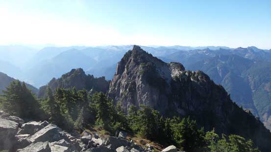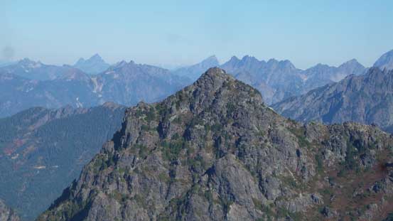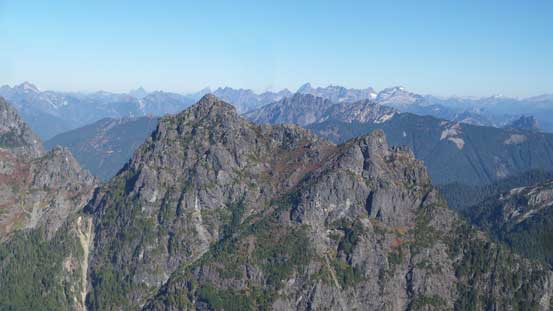 A closer look at Merchant Peak with quite a few rugged peaks behind