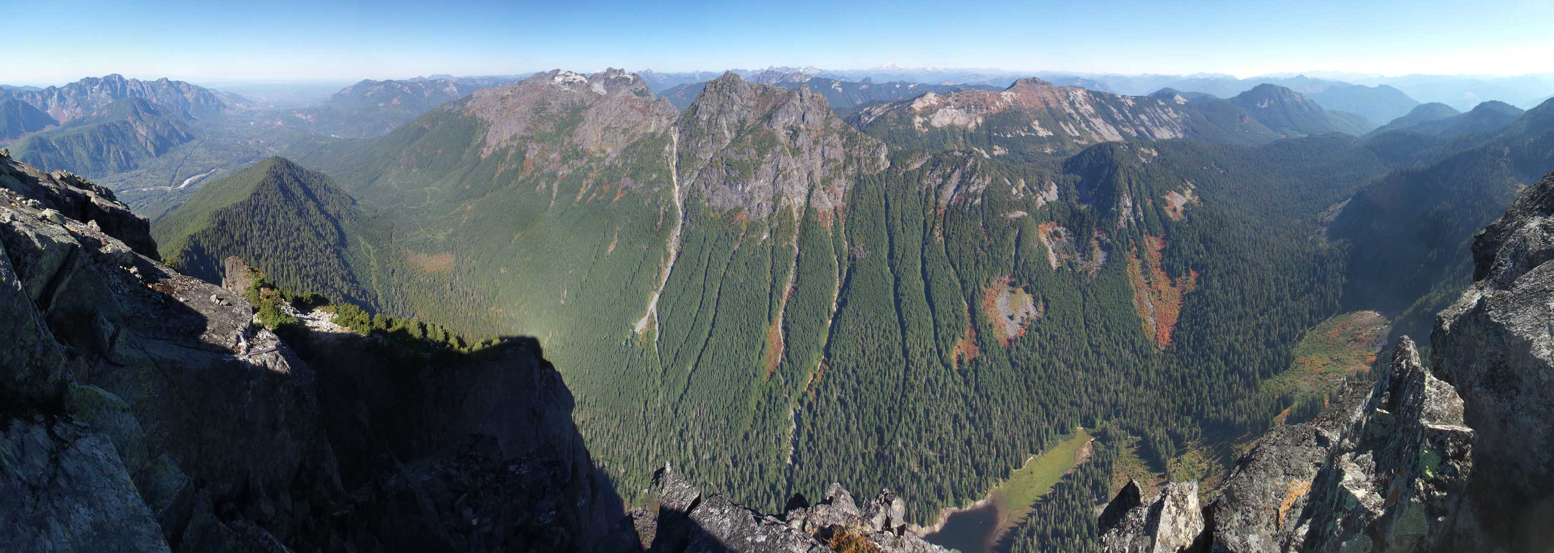 Townsend Mountain in the foreground with Glacier Peak behind on the horizon