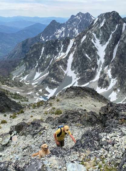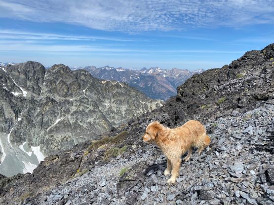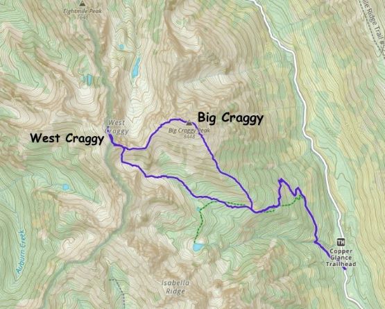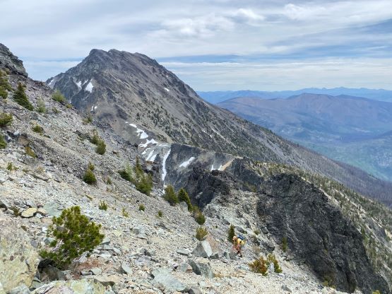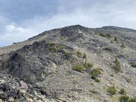 Without doing much lingering we immediately focused on the traverse towards West Craggy. Again, none of us did much research asides downloading several GPX tracks. Those tracks were more than enough to get the job done. We stayed closer to the ridge crest initially but the talus were rather large and unstable. Instead, I found some goat (or human) paths a short ways from the crest and made quick progress using them. The most tedious section of the traverse was to work around the south side of an intermediate bump between the two Craggies. We followed the GPX tracks staying low but had to deal with some steep side-hilling on more unstable boulders. Nonetheless, we encountered several cairns indicating that we were indeed on the correct route.