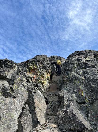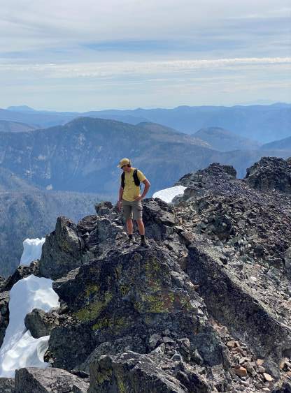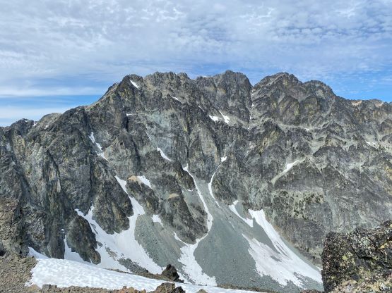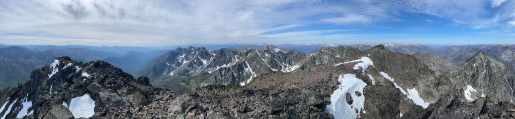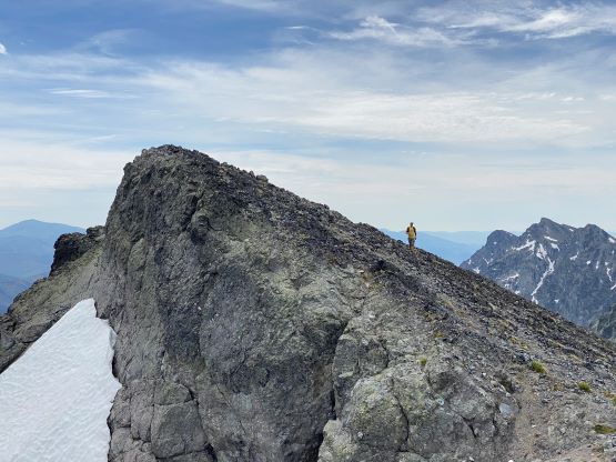 Matt was short on water but there wouldn’t be any source until the descent from West Craggy a few hours later, but we found some patches of snow to make some “smoothies”. I also brought a bit of extra water so we should be fine. Higher up we entered the scrambling zone. I did not do much research but I did read somewhere that climber’s right offers steeper scrambling but with less loose rocks. I opted to stay climber’s right for fun factor, and the scrambling was entirely within the 3rd class range. The topping wasn’t the true summit and the highest point was a ways traverse due climber’s left. There were several high point contenders and we made sure to have visited them all.