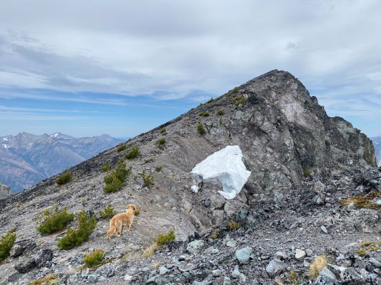 Without doing much lingering we immediately focused on the traverse towards West Craggy. Again, none of us did much research asides downloading several GPX tracks. Those tracks were more than enough to get the job done. We stayed closer to the ridge crest initially but the talus were rather large and unstable. Instead, I found some goat (or human) paths a short ways from the crest and made quick progress using them. The most tedious section of the traverse was to work around the south side of an intermediate bump between the two Craggies. We followed the GPX tracks staying low but had to deal with some steep side-hilling on more unstable boulders. Nonetheless, we encountered several cairns indicating that we were indeed on the correct route.