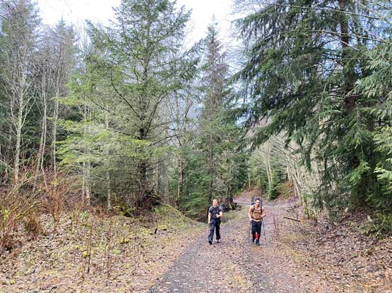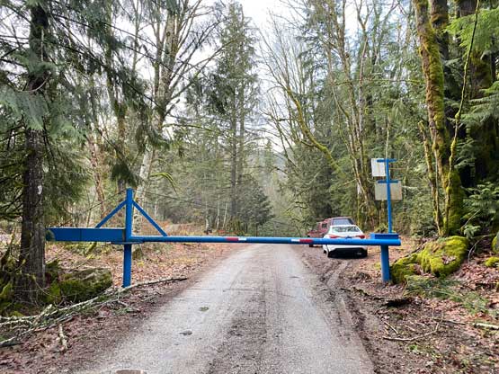 I had been thinking about this peak for at least 6 years and eventually a not-so-good weather window on Sunday made me to finally pull the trigger. I made up my mind on Thursday and subsequently committed to a dinner on Sunday at 7 pm and an additional hour of work at 9-10 pm. The weather forecast improved at the last minute, but the time constraint forced me to stick to the original plan. Shayan and Scott from “SWBC Peak Baggers” Facebook group opted to join me. I think this is a peak for the die-hard peak-baggers only given the dumpster nature so I was glad to have company. Shayan had just done a long snowshoe outing to the obscured Spider Peak on Saturday (which I did in March 2021) but he’s still keen to join. It wouldn’t make sense to start too early for this objective so we decided to meet in Abbotsford at 7 am in order to start hiking at the first light. The border crossing had no delay whatsoever but the drive to the gated FSR at Silver Lake was a little bit longer than I thought. I opted to not fuss around with biking as I only had the Corolla with me at the moment and this vehicle isn’t capable to transport a bike. The last kilometer on the access road before the gate was unpaved but didn’t impose any problem to the Corolla.