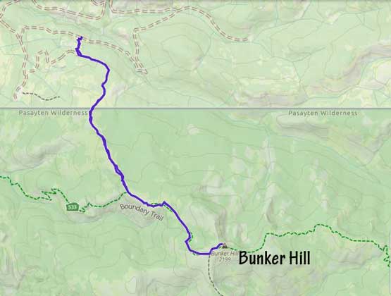 Bunker Hill is a lesser known summit buried deeply in the Pasayten Wilderness. The Boundary Trail traverses pretty much over its summit, but to get to this spot via Boundary Trail’s either direction takes several days. This is not a significant summit by any measure so those who summitted Bunker Hill likely did it as part of the Boundary Trail through-hike. I obviously had some other plans. I noticed this peak while doing Sheep Mountain a couple months ago. The Pasayten River FSR goes to within 1 km from the BC/WA border and from the BC side Bunker Hill seems like a quick ascent albeit with some bushwhacking. I wouldn’t drive this far just to do Bunker Hill but I did keep this objective in mind when I happened to be in the area.