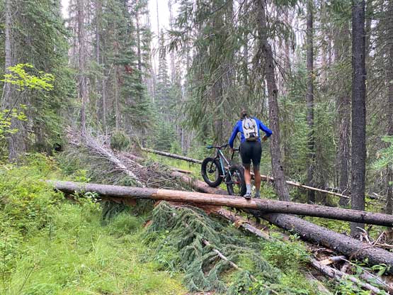 Eventually we must face the descent and the bushwhack. I let Matt to lead in front for most of the time while I stayed behind to check GPS and to correct our bearing. The downhill travel over pick-up-sticks was overall not as terrible as on the ascent. After the border I took over the lead to find the end of the road. I was literally bushwhacking while holding the phone on my hand to retrace our GPS tracks. Lower down we decided to more-or-less stick to the known and dived back into the bush to get back to the truck. Overall I cannot say that I enjoyed this ascent, but for a low-expectation summit this was actually not too terrible. The drive home was long and tiring. We eventually drove back to Abbotsford to meet up with Matt Juhasz who lent us the second fatbike. Matt had just finished an ascent of Tulameen Mountain so we exchanged our stories of the day.