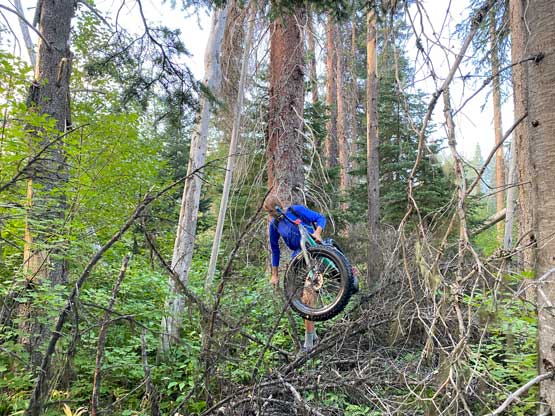 Eventually we must face the descent and the bushwhack. I let Matt to lead in front for most of the time while I stayed behind to check GPS and to correct our bearing. The downhill travel over pick-up-sticks was overall not as terrible as on the ascent. After the border I took over the lead to find the end of the road. I was literally bushwhacking while holding the phone on my hand to retrace our GPS tracks. Lower down we decided to more-or-less stick to the known and dived back into the bush to get back to the truck. Overall I cannot say that I enjoyed this ascent, but for a low-expectation summit this was actually not too terrible. The drive home was long and tiring. We eventually drove back to Abbotsford to meet up with Matt Juhasz who lent us the second fatbike. Matt had just finished an ascent of Tulameen Mountain so we exchanged our stories of the day.