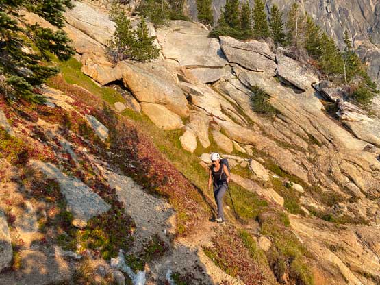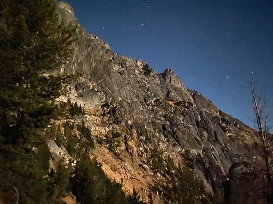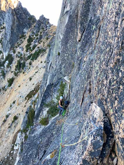 Winnie and I left White Rock on Saturday afternoon and made our leisure way down across the familiar North Cascades Highway into Washington Pass area. We parked at the trail-head at 9 pm and set the alarm at 2:40 am. The plan was to do this entire climb car-to-car in a single push as there’s no water source at this time of a year. In terms of the gears we decided to bring one 60m single rope and a double rack of cams up to size 4. We would also haul 4.5 L of water each which proved to be a slight overkill and we anticipated an 18+ hour day. This climb eventually turned out easier than expected but still took us 17 hours, although we weren’t really rushing for most of the day.