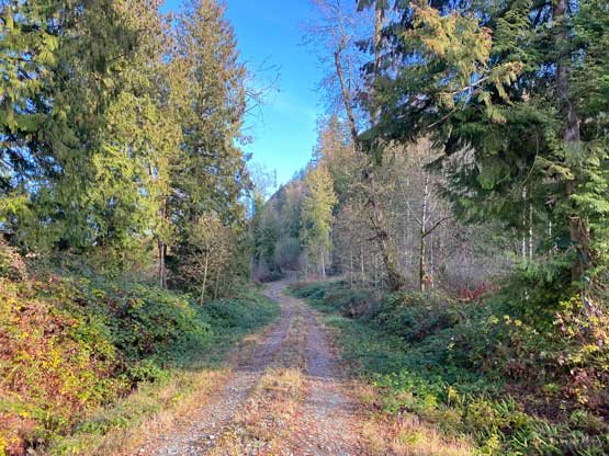 I didn’t manage to drag myself out until 12 pm after having a massive meal at home, and subsequently didn’t make to the base of Butler Hill until 1 pm. The border crossing was fluent going into the U.S. but I noticed an insanely long line-up for the northbound. I wasn’t aware until coming back home that this was actually in the American’s Thanksgiving. In any case I decided to try out the NE access but immediately got denied by a gate with aggressive signs of private properties. I would still risk this private road if this was the only option, but thankfully it wasn’t. I then drove a few kilometers back and went for the western access. This road turned out to be gated as well but at least there wasn’t any aggressive stay-out sign, so I parked the truck and unloaded the bike.