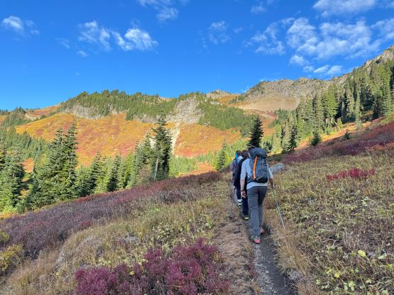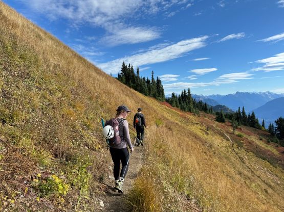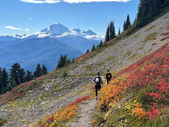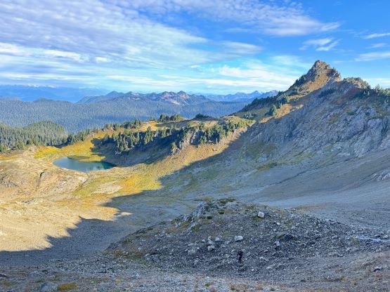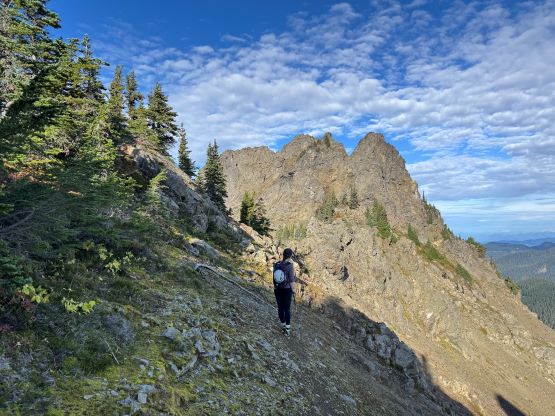 We lingered up there for more than half an hour to fully soak in the views but eventually it was the time to descend. I thought about taking the false summit variation but given the greasy conditions it was smarter to tackle the devil that we knew, so down the north side ledge we went. A few delicate moves later we were back on the sunny south side of the face and had a quick descent back to that aforementioned saddle. I picked up the ditched shoes and decided to swap them on later, after finishing all of the chossy terrain. This time we opted to take the “low route” variation traversing across the entire north face of that old fire lookout without grunting back onto its summit, and then took a short-cut down some steep heather to rejoin the trail. The rest of the descent was uneventful and we finished the round trip in just over 5.5 hours. While driving north across the border I did some math. I would be home no later than 4 pm, but I had no work booked in the evening. Instead of wasting an entire evening at home I made the spontaneous decision to do a bonus trash bag. Mission was only half an hour away and there’s indefinitely amount of dumpster supplies. I tend to go for the worst when I go out alone, so I picked “Weatherhead Peak”.