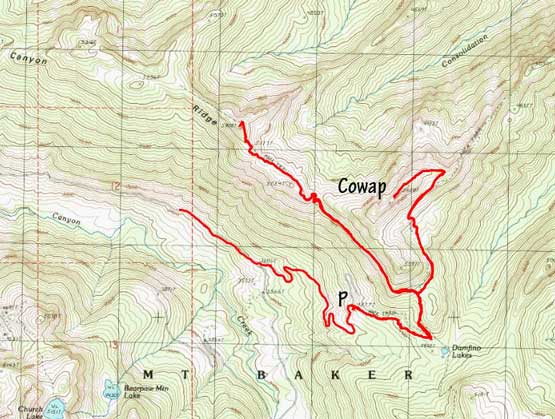 Cowap Peak and Canyon Ridge east side hiking routes. GPX DL