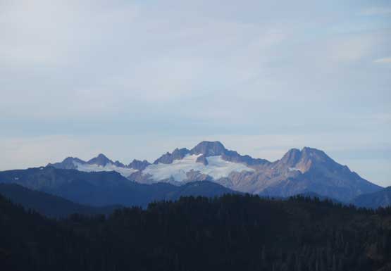 A wider view towards Bearpaw Mountain, another short objective nearby