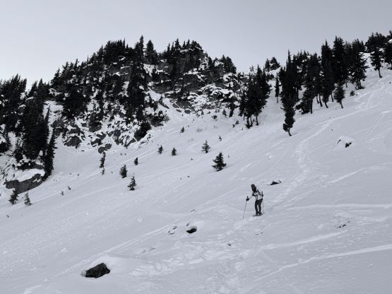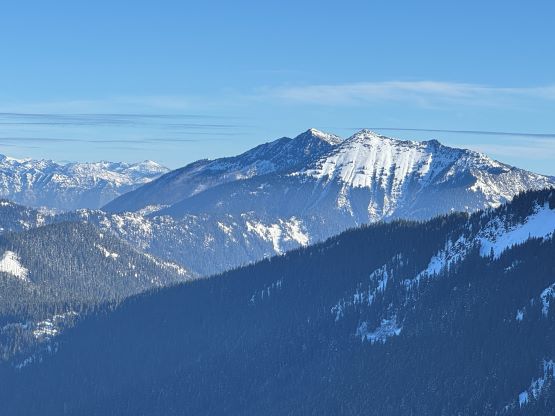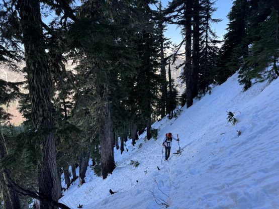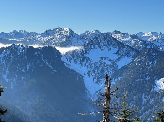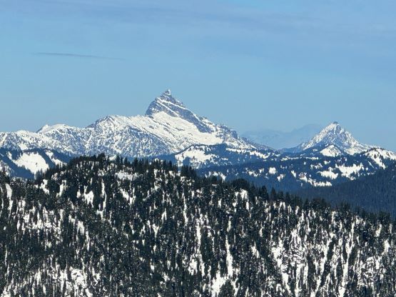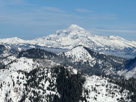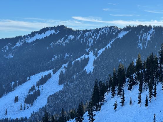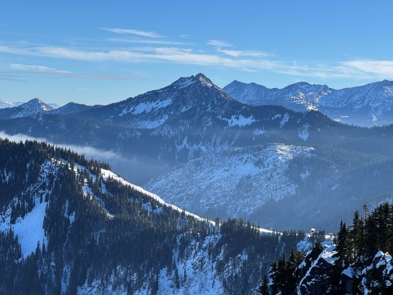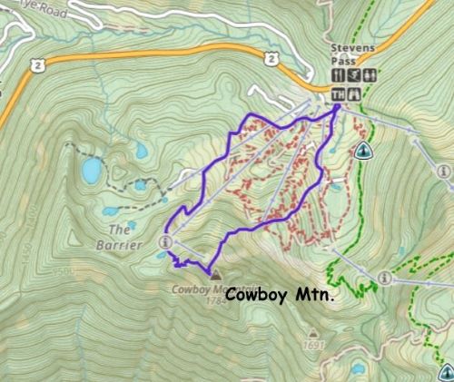 Cowboy Mountain rises directly behind the ski runs at Stevens Pass and the ascent can be easily made from the resort. The best time to do this objective is November and May when there’s sufficient snow to snowshoe (or ski) but the resort has not opened yet or has already closed for the season. This peak can also be done in summer from the nearby PCT trail but the summer should be reserved for better peaks. Furthermore, I estimated the round trip to be no more than “a few hours” so there’s no point in wasting a full day. Therefore Cowboy Mtn. was reserved strictly for a before-work kind of trip in the shoulder season. This past Thursday had that perfect oppourtunity as that was the only bluebird day of the week but I had been swamped by work recently.