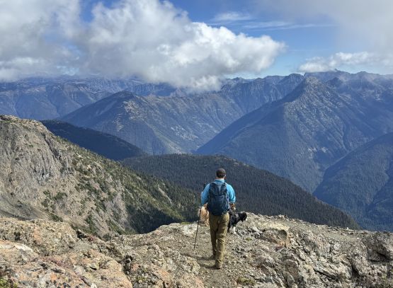 I had to be back by 7:30 pm for work and Mark also had an evening commitment at 7 pm so we had to be fast and efficient. Mark and Nico picked me up at 5 am as planned and we dashed down south across the border in Mark’s Jeep, together with their dogs Kaslo and Walter. The border guard asked us quite a lot of questions probably because of the weirdness of three random dudes crossing the border in an Albertan vehicle. The Americans are really not welcoming visitors these days. Mark then drove us down to the trail-head uneventfully and I tried quite hard to catch up with some sleep. I think I did fall sleep for at least half an hour, which was great. I didn’t bother to do much research besides downloading a GPX track from peakbagger.com. Despite the fact that 95% of the route would be “on trail” this is a huge ass slog with over 25 km distance and 1800 m elevation gain. The one trip report that I referenced indicated 11 hours round trip so I was anticipating something like 9 hours for us. It turned out that we were even faster than my estimation. There was no fresh snow to be seen so we left the microspikes in the vehicle and opted to travel light.