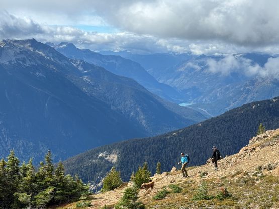 Upon retreating we figured we should have enough time to get back for work so Mark and I took a long break watching the dogs, while waiting for Nico tagging the summit. Nico got back in less than 20 minutes and then we together gingerly descended the loose gully. We did trigger several rocks towards each other but that was unavoidable. After finishing the scrambling sections we followed Nico’s lead power-walking and jogging for most, if not the entire descent. We again took a long break at the lake for the dogs but then made a single dash down to the vehicle afterwards. I took a chossy class 4 short-cut to bypass some of the detours that we did for that creek crossing. I also somehow missed the trail heading back to the parking lot and ended up walking half a kilometer along the highway. Our round trip time was just over 7 hours taking in account of all the breaks, so this was not that big of a day. Mark managed to stay awake for a couple more hours driving and I did get back to White Rock in time. I also caught up with some sleep while sitting in the vehicle. I eventually opted to work for 2 hours to conclude this exhausting but satisfying day.
