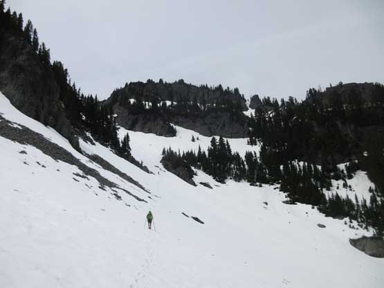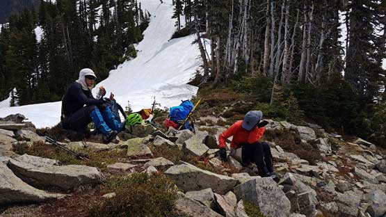 Down the same way we took another long break once getting back to Denman/Plummer saddle since that’s where we ditched the backpacks. Rather than ascending back up and over Plummer’s shoulder we headed straight down the north side valley. There’s no trail in this valley so eventually we had to cut over (skier’s right) to find our path. There were a set of boot path leading the way so minimal thinking was required for us. The previous party must got themselves seriously confused lower down that we got sucked into some bad bushwhacking. I had the GPS unit handy so soon realized the mistake. After a bit of frustrating elevation regain we plunged back into the correct bowl and were soon back to the car. The round trip time was around 7 hours I think just as expected. Not bad, not bad…