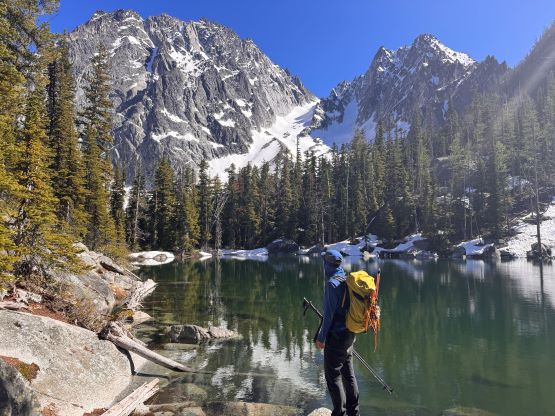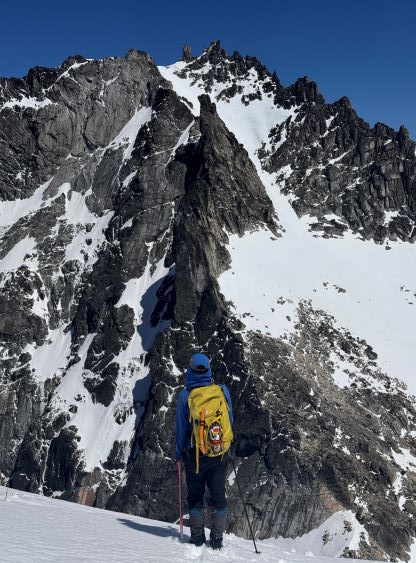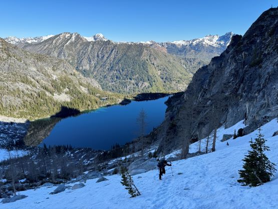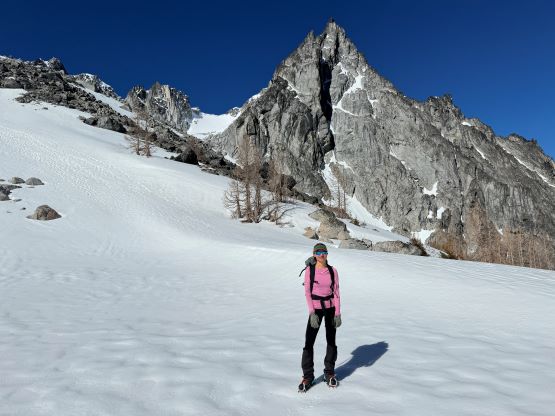 Dragontail Peak and Colchuck Peak are two of the most popular objectives in the core zone of the Enchantments but for some reasons I managed to leave them behind. I had paid two visits into the core zone from Colchuck Lake side and did Enchantment Peak and Prusik Peak respectively. The approach was definitely a slog, but the views made it worthwhile. The connection between Dragontail Peak and Colchuck Peak involves some steep snow at and around the “Pandora’s Box”, and this stretch is considerably harder than the standard routes of each of these peaks. I was looking at a full value day with Erica on Wednesday and eventually decided on these objectives. There was some significant but yet unknown amount of precipitation in the form of snow thank to a cold snap with two atmospheric river events, but the SE Cascades had escaped most of it. The colder temperatures in the morning meant the snow conditions would be prime for climbing, but the day was supposed to warm up quickly. After formulating a plan Erica paid a visit to Vancouver’s MEC and bought me a pair of brand new Petzl Vasak crampons which is quite a bit lighter than the Lynx. This seemed like the perfect trip to test them out. Erica also needed to break into her new mountaineering boots and I suggested her to carry them in while wearing trail-runners on the approach and this was what I would do as well.