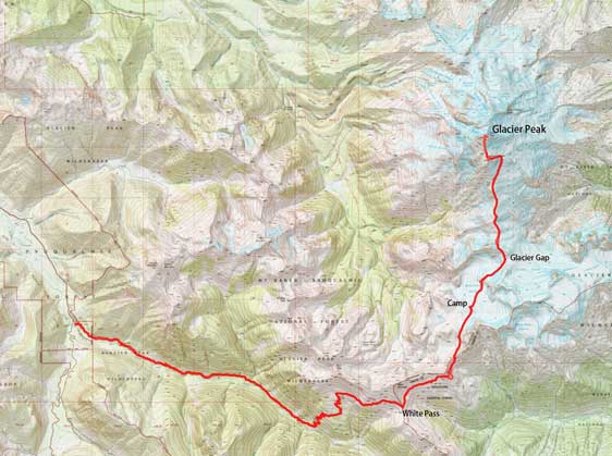 The namesake peak of Glacier Peak Wilderness is buried literally in the middle of nowhere and is by no doubt the most remote stratovolcano in Washington, and likely also in the whole Cascade Range. For that reason it’s also the least known among the five Washington volcanoes even though it’s much bigger than Mt. St. Helens and only slightly smaller than Mt. Baker. This is very unfortunate. You simply cannot find another one that combines a volcanic ascent with a long trek through rugged Cascades landscape. There used to have a shorter approach back in the days but thank to the deactivation of a key access road that approach is no longer an option. Nowadays almost all parties have to hike in via White Pass from Mountain Loop Highway making an arduous plod with more than 40 km distance and 3000 m cumulative elevation gain. Trail-runners have pulled it off in a single day push but I don’t consider myself as being in that category, so a leisure 3-day trip was planned between Vlad and myself back in this year’s early July.