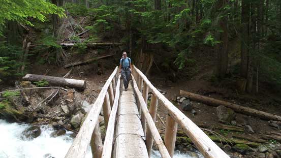 The next morning we woke up in a pitch dark and got going just when it’s bright enough to not require the use of head-lamps. The first 5 miles down the trail was pretty much next to flat and felt almost exactly like the approach on Mt. Olympus, albeit much shorter this time. I opted to use trail-runners for this portion and that turned out to be a good call. The trail might not be as tame as you think thank to a couple overgrown stretches (crossing avalanche paths). We literally had to push through the thick bush and then got soaked in no time thank to the heavy morning dew. Lots of four-letter words were flying around and good thing I brought two pairs of socks. The next thing we arrived at Mackinaw shelter but that thing was old and very ugly-looking. We were not in the mood of lingering so pushed onwards without doing much of a stop at all. Another kilometer later we took a break right before the first switchback.