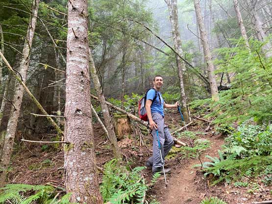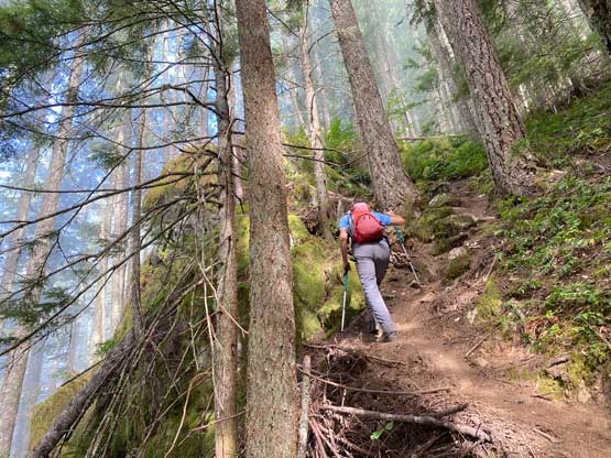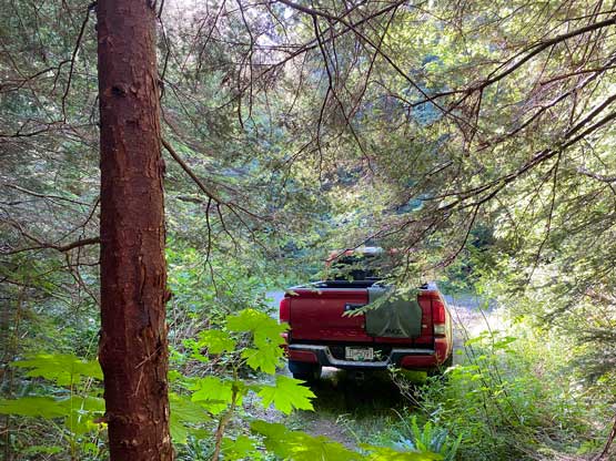 I made a spontaneous decision to scramble Gunn Peak simply because I had no better idea. I just came back from an exhausting Rockies trip but I needed a day-trip on Sunday to take advantage of the local weather. Vlad and Silvana decided to come along even though both of them were on some other hikes on Saturday and this would be my first trip with Silvana so I was looking forward to it. Vlad and I made the decision to leave White Rock at 5:30 am in favour for a more fluent border crossing. Silvana simply decided to just sleep in my place and wake up together with me, mostly to get at least an extra hour of sleep as she lives much farther to the north in Coquitlam. The drive down to US-2 took about 2 hours. I had previously driven the logging roads to Barclay Lake trail-head in 2017 for Baring Mountain but I couldn’t remember much. The recent trip reports indicated a passenger car being fine for the access so we contemplated taking Vlad’s car, but opted not. The road turned out not terrible, but also not as smooth as I was hoping for such that we were glad to have taken my Tacome all the way down instead of Vlad’s electric car. The fuel costs would be enormous but I always plan trips with lots and lots of contingency in case things turn out harder than expected. For Gunn Peak’s scramble we turned onto a deactivated spur road just before Barclay Lake trail-head and parked right at the start of the climber’s trail. Most scramblers would simply park at the main FSR and walk some extra distance.