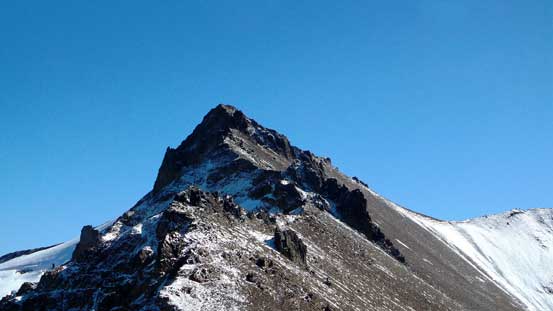 After taking hundreds of photos it’s time to head home… Going down the loose slope was easier and much faster and in short time we were back to the side-hill slog across the bumps on Chowder Ridge. On the return we stayed a little bit higher than necessary and had to deal with a bit more up-and-downs (with one optional down-climb). Descending the tricky step back to Chowder/Skyline Divide col was mostly snow-free now and didn’t impose any problem to us. None of us was looking forward to the slog back up to the highpoint on Skyline Divide, but with the views it didn’t seem to take that long, and once we picked up the well-traffic’d trail it’s a mere putting one foot in front of another back to the parking lot. Hordes of hikers were going up for the moon view I assume.