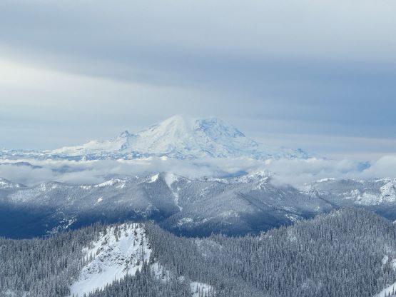 I eventually got back to Kate after being away for 1 hour and 20 minutes and we then immediately descended together. There was no sign of our own tracks but with me leading the navigation wouldn’t be a problem. In about half an hour we exited the misery and the treeline zone was still very calm. This was strange as the only winds we encountered were on the ridge top, and below a certain elevation threshold it was absolutely calm. The descent was complicated by the lost of one of Kate’s snowshoes, but the snow depth was overall not that deep yet, that it was possible to make our own way out by post-holing. There was some struggling, but it wasn’t too bad. We simply followed our own tracks all the way down, and took off the snowshoes at the exact same spot where we donned them in the morning. The round trip time was over 7 hours which was actually not that bad considering the weather and the conditions. While driving us back I decided spontaneously to hike Little Si as the weather was actually fine west of the pass and we still had some daylight time. Most importantly, Kate needed a summit so let’s find something easy.