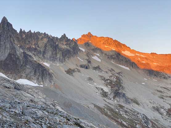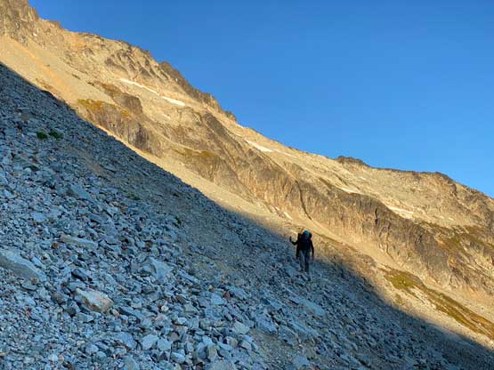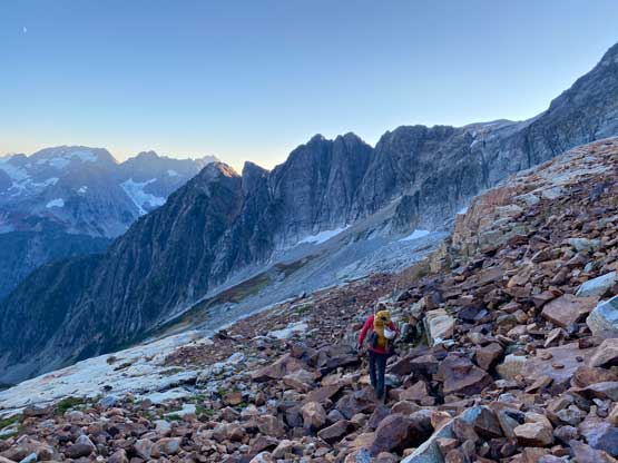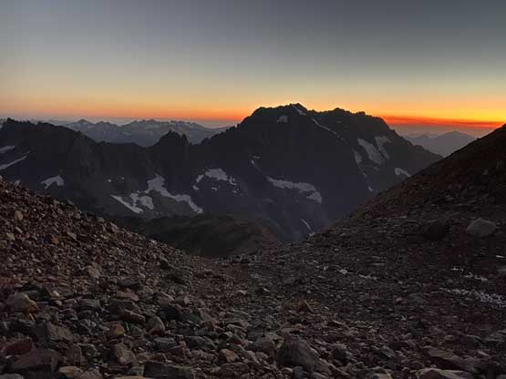 The halfway traverse back across Horseshoe Basin to the old mining site was shitty as fuck but the second half across the slabs was much better. We refilled the water bottles and raced with sunset dashing up the 300 m regain back to Sahale Camp and we succeeded. I found my ditched trail runners, put them on, turned on the head-lamps and dashed down the final stage of this trip. Talon and I went ahead to jog down Sahale Arm trail. I don’t have running background but I somehow was feeling energetic and wanted to push to see my potential. I managed to keep up with Talon almost all the way back to Cascade Pass but gave up on running afterwards. We then power-walked the final 7 km back to the parking lot and arrived 20.5 hours after leaving it in the morning. Eric made back half an hour later with his monstrous pack and we all started driving almost right away. The plan was to push all the way back home but only Eric managed to do so. I was the first one calling it and slept in my truck on a random pull-out on Cascade River Road, and Talon made a little further and slept in a gas station. I woke up at 8 am the next morning and leisurely drove home.