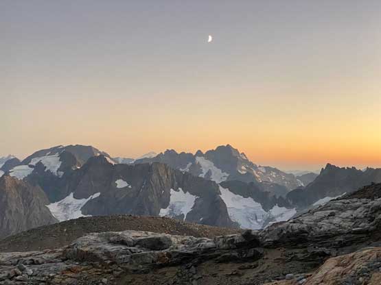 The halfway traverse back across Horseshoe Basin to the old mining site was shitty as fuck but the second half across the slabs was much better. We refilled the water bottles and raced with sunset dashing up the 300 m regain back to Sahale Camp and we succeeded. I found my ditched trail runners, put them on, turned on the head-lamps and dashed down the final stage of this trip. Talon and I went ahead to jog down Sahale Arm trail. I don’t have running background but I somehow was feeling energetic and wanted to push to see my potential. I managed to keep up with Talon almost all the way back to Cascade Pass but gave up on running afterwards. We then power-walked the final 7 km back to the parking lot and arrived 20.5 hours after leaving it in the morning. Eric made back half an hour later with his monstrous pack and we all started driving almost right away. The plan was to push all the way back home but only Eric managed to do so. I was the first one calling it and slept in my truck on a random pull-out on Cascade River Road, and Talon made a little further and slept in a gas station. I woke up at 8 am the next morning and leisurely drove home.