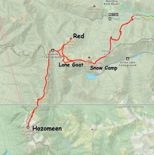 Hozomeen Mountain North Peak (+Red, Lone Goat, Snow Camp)
