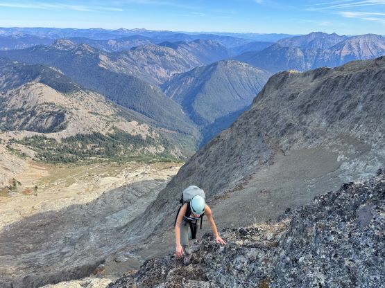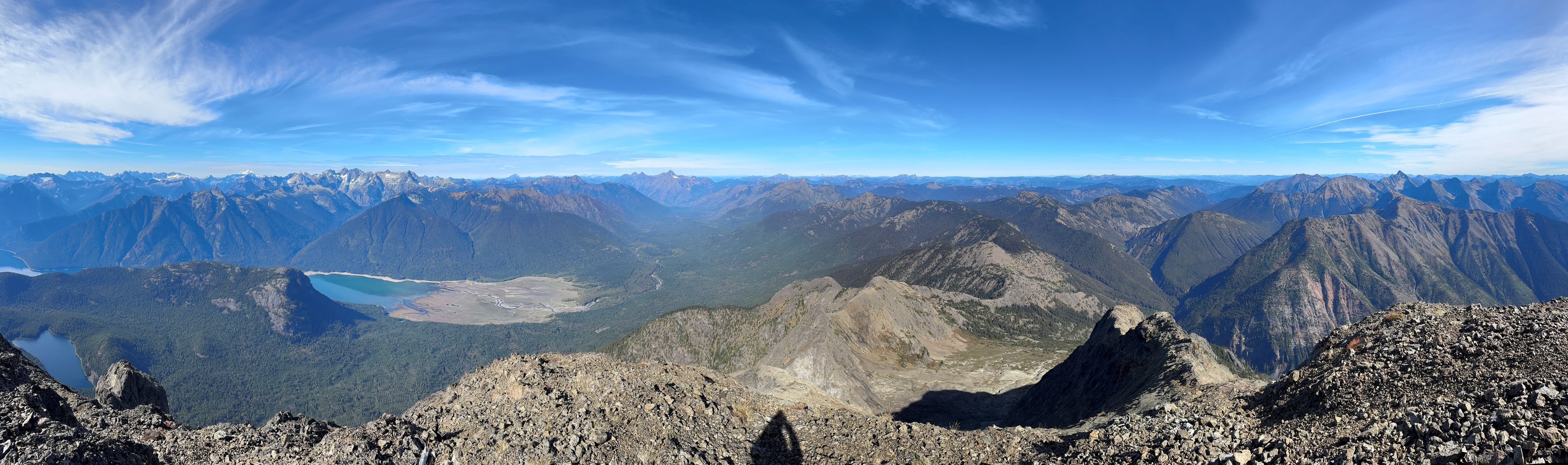 Hozomeen Mtn. is an iconic double-peak massif dominating the north end of Ross Lake while boasting over 1100 m prominence. The rarely climbed south tower is considered one of the 10 hardest peaks in Washington by the easiest possible routes. The north tower is nowhere as difficult but still has reputation of being sketchy. The standard route via the NW Ridge does not seem probable until one’s literally at the bottom of it. There is a great range of variety on the opinions of the difficulty but after doing it I generally agree with the majority that it’s mostly 3rd class with odd bits of 4th class. The terrain is somewhat loose (nowhere as bad as the Goodsirs), down-sloping, extremely exposed but not protectable so I also understand why even some of the experienced climbers found this demanding or couldn’t even make the summit. I had been eyeing this objective for at least 8 years and the general consensus back in the days was to time that narrow window in the early summer when the lower headwall’s still filled in with snow. This would surely offer the easiest climbing but then crampons etc. would also be required. For one reason or another this never ended up happening for me. The “beta” had changed over the last couple years, that apparently a late season snow-free ascent has now become the standard practice. Shayan M. was the first to report this route in the late summer while not being sketched out, and the following year Chris G. made a solo run in sub-10-hour round trip, calling it “mostly class 2”. Numerous groups had since climbed it in similar conditions and most agreed with the “class 3/4” rating, so why not ditch the snow equipment and make it a light-and-fast single day push.