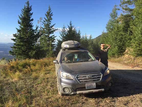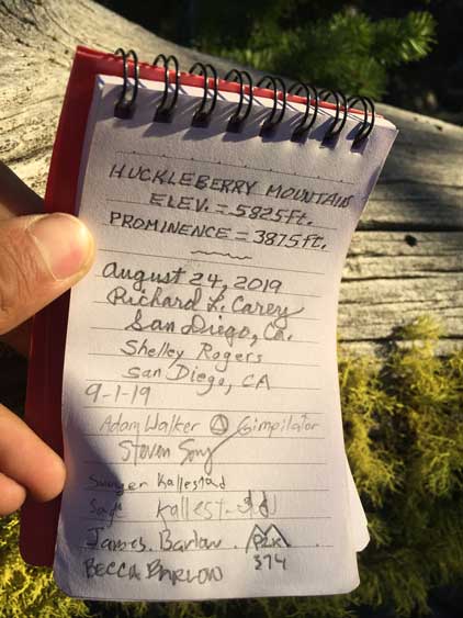 Adam and I were joined by James B. and his family on this particular ascent towards the end of this extended peak-bagging road trip. It seems like one can access this peak by at least two or three directions and the one we chose was the roads on NW flanks. We did next-to-zero research and the direction was given purely by Google Map app. It turned out that the road we picked was in a decent shape and we were able to drive high in a timely manner. This road goes all the way to the summit of Stensgar Mtn. nearby and we decided to bag that one too because it’s only 1 meter lower in elevation, but Huckleberry Mtn. first.