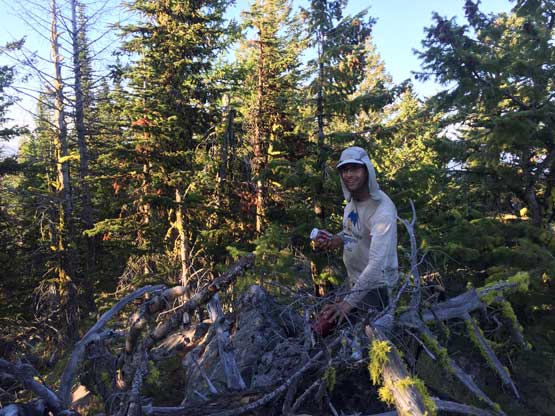 Huckleberry Mtn. is not a unique name. I’ve seen at least four different, officially-named Huckleberry Mtns. in just the state of Washington, including one not even very far away. This particular Huckleberry Mtn. isn’t really an attractive summit but is considered “important” in peak-bagging community because of its topographical prominence. This peak is mostly forested and heavily logged, and despite the low elevation the prominence ranks #23 in the state of Washington. The ascent is nothing fancier than a typical drive-up in NE Washington but one does have to bushwhack a bit to reach the highest point. There are several bumps along the forested ridge with very similar height and the general consensus is to bag them all just to be sure…