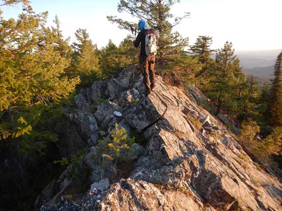 We parked at the “SW Corner” of the upper mountain on an obvious pull-out, and ascended into open forest immediately. The bushwhacking was very much none-existent and in short time we made to what seemed like an abandoned logging road traversing northwards towards the direction we wanted. We followed this spur road to its end and bushwhacked a short ways to reach the long summit ridge. The true summit was supposed to be on the north side so we went that way, traversing up and over several (forested) bumps. It wasn’t obvious which of the high points was the highest so we tagged them all just to be sure, but the northernmost bump had the nicest views plus geological survey markers.