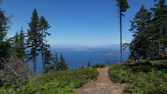 From the upper parking lot it’s a mere 2-minute walk to the summit. The views were excellent towards east with some unique oceanic scenery and some high peaks such as Mt. Baker were also visible. The highest point on the summit was actually an observation tower so we climbed up, and got some even better views. Back down from the tower we found a picnic table on a shaded spot to have lunch, and about 1 hour later it’s time to head down to catch our scheduled ferry at 5:15 pm. Except for a traffic delay near Eastsound we had no further issue to catch our ride.