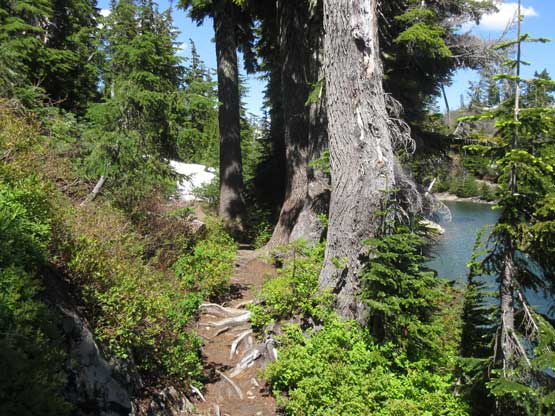 The rest of the hike-out on Bagley Lake trail was easy but there’s occasional deep post-holing on weak spots. I wasn’t surprised and I was actually expecting to break a couple snow bridges. There’s lots of questionable snow bridges over small creeks and it feel creepy to trust them. Once past that famous concrete bridge I had descended into the tourists zone with plenty of inexperienced hiking up on snow wearing flip flops..