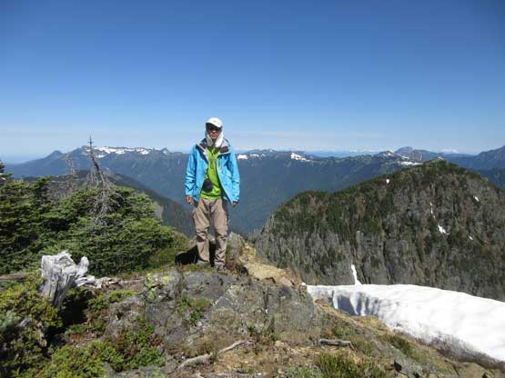 I was expecting some 3rd class trashing up bush along the south ridge but it’s surprisingly easy as long as I paid attention to micro-terrain. There’s one or two 3rd class moves on blocky steps but that’s it, and bushwhacking never took over as I always could find a path to work around. Before realizing I already arrived at the summit and after some obligatory photos I took a nap. Half an hour later the others showed up following the same route.