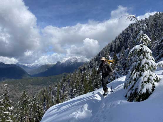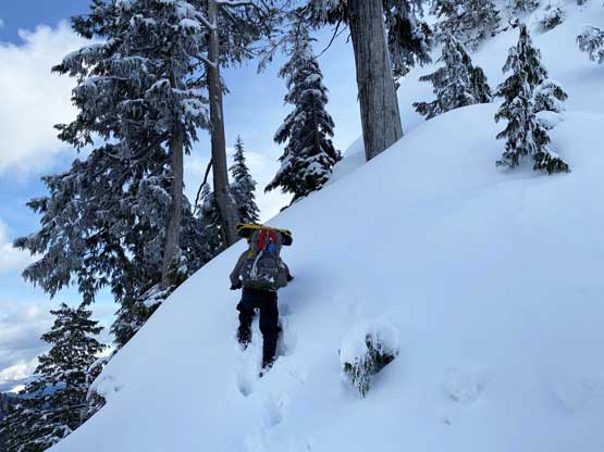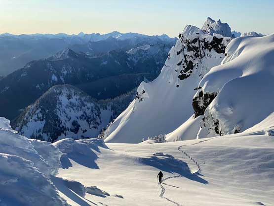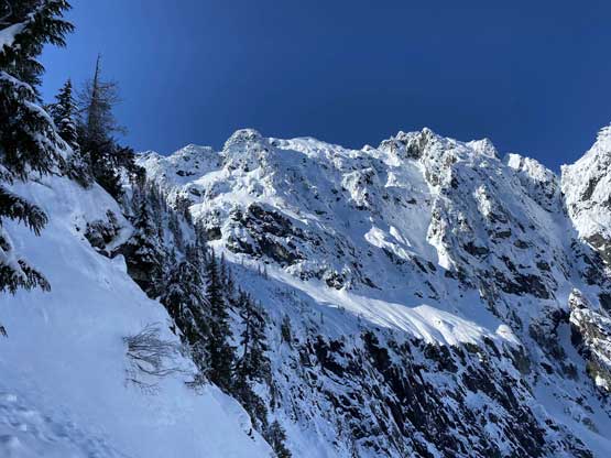 My plan had been to climb Mt. Index via the Hourglass Gully route as a winter ascent on snowshoes because this route offers the most fulfilled experience of this iconic summit. The better way would be via the full Index Traverse over the north and middle peaks but I do not posses the required rock climbing skills for that. The ascent of Hourglass Gully isn’t technical, but the challenge comes from the conditions. As all winter/spring climbs go, timing is everything and the window for this route is fairly short. Asides from the weather one needs the most stable conditions from avalanche perspective as the entire upper mountain is exposed to all sorts of hazards. The optimal window would be a clear but cold day in the “early spring” time frame, which is around early March in recent years and Matt Lemke’s ascent in March 2019 confirmed my decision to climb this in a similar window. One advantage of an “earlier ascent” is the snow coverage on the lower east ridge approach. A thick snowpack could theoretically reduce the pain of that vertical thrashing section although 60-degree wallowing on snow is by no mean “easy” neither with winter overnight gears..
