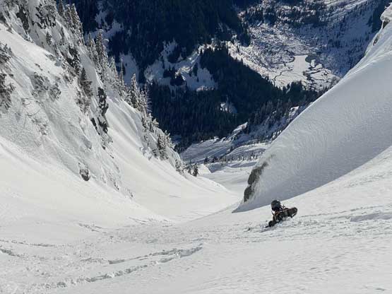 For the past several years I thought about soloing this route as I knew nobody that had the skills, motivation and the required degree of flexibility at the same time. My plan for winter/spring climbs is to do anything to maximize the chance of success, that is to pull the trigger at the last minute whenever the window forms and that does not have to be on a weekend. The climb could theoretically be done in one day but I wanted to have two days to minimize the exposure in the southeast-facing Hourglass Gully. The climb of the gully has to be done in dark but the forested approach isn’t nearly as possible without visibility, so to do this in a single day isn’t quite practical. For the last couple years I started to believe that I would never end up climbing it but things changed a month ago after coming back from South America. Connor M. needed this peak because it’s on the Washington’s P2K list. Connor would be the most ideal partner as he is a rare climber that posses extreme degree of flexibility in timing, a shit ton of energy, competent technical skills and more than enough money… I wasn’t sure whether or not I could manage to pull the trigger at the last minute because my work had been getting increasingly busy during the school season over the last couple years, but I convinced myself that if a solid window formed then I would bail two days off work no matter what. This happened to be on the Sunday-Monday and after a few emails back and forth we instantly pulled the trigger on Friday.