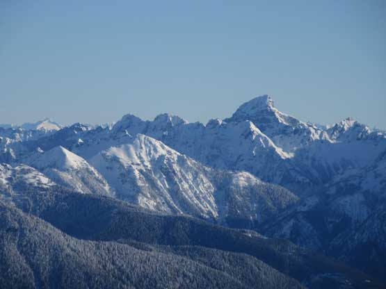 Mt. Index isn’t a tall summit by Washington standard but is definitely one of the more iconic and photographed mountains in the state. The massif consists of three summits – North, Middle and Main with the former two both included in the “Difficult Ten” in Washington, and Middle Index is agreed by many as the single most difficult summit in the entire state. The entire northern flank of the massif, including north and middle peaks forms one of the sheerest cliffs in the state, that rises more than one vertical mile abruptly off the uber-busy Highway 2. The sudden sight of Mt. Index from the highway, on both directions, inspires every single person who drives by and at the same time, teases every single person who climbs. The ascent of the main summit isn’t nearly as technical as the north and middle peaks, but still a burly fair. There are three routes that make sense – the “standard route” via Hourglass Gully from the east side, the Mt. Persis – Mt. Index ridge traverse and the third option, the SW slopes via a maze of logging roads. The latter two options are both non-technical, but require arduous and roundabout approach because the logging roads are now gated at Highway 2 by the private company.