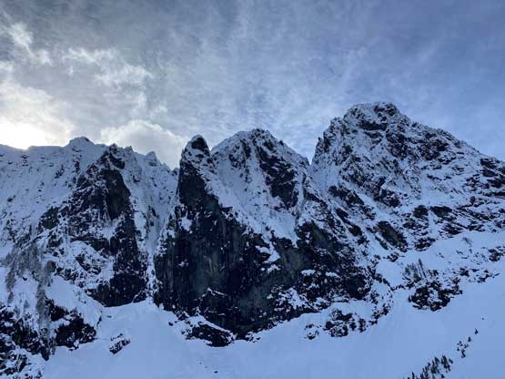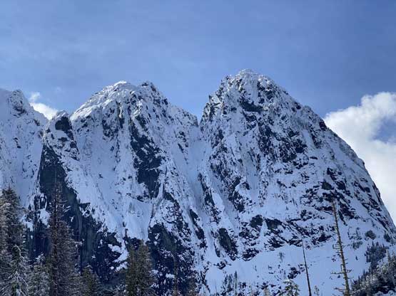 My plan had been to climb Mt. Index via the Hourglass Gully route as a winter ascent on snowshoes because this route offers the most fulfilled experience of this iconic summit. The better way would be via the full Index Traverse over the north and middle peaks but I do not posses the required rock climbing skills for that. The ascent of Hourglass Gully isn’t technical, but the challenge comes from the conditions. As all winter/spring climbs go, timing is everything and the window for this route is fairly short. Asides from the weather one needs the most stable conditions from avalanche perspective as the entire upper mountain is exposed to all sorts of hazards. The optimal window would be a clear but cold day in the “early spring” time frame, which is around early March in recent years and Matt Lemke’s ascent in March 2019 confirmed my decision to climb this in a similar window. One advantage of an “earlier ascent” is the snow coverage on the lower east ridge approach. A thick snowpack could theoretically reduce the pain of that vertical thrashing section although 60-degree wallowing on snow is by no mean “easy” neither with winter overnight gears..