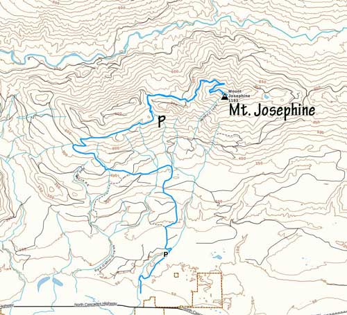 Mt. Josephine is a small wooded summit not far from the town of Sedro-Woolley in the North Cascades. The hillsides are heavily logged on almost every single corner and highest spur runs all the way to the summit. This peak hasn’t caught much attention in the peak-bagging community, probably because it doesn’t boast as much topographical prominence as some of its neighbours does such as Lyman Hill. There used to be a fire lookout on the summit but only the remains of it are left there now, and the 360-degree panoramic view is also obscured by the growing timbers. From all perspectives this peak falls into the category of dumpster-diving but does provide some exploratory feel as it’s not a well-documented summit on the internet world, yet.