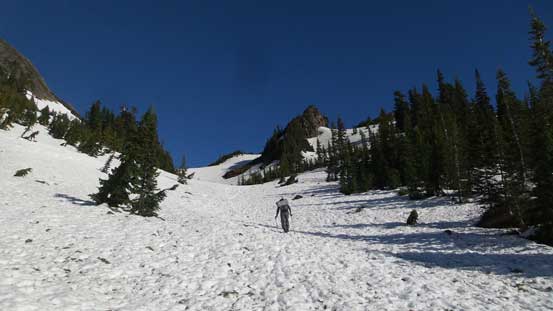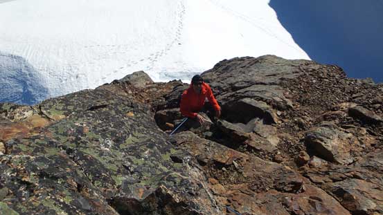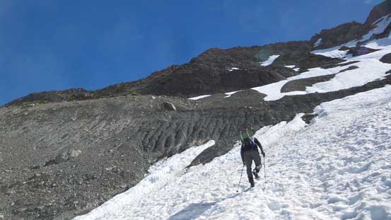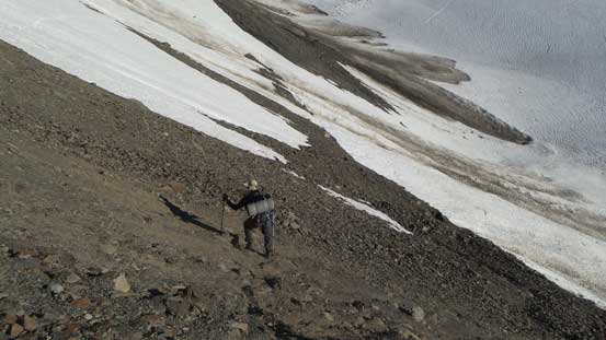 Cresting the “col”. Keep plodding until it makes sense to get onto the moraine